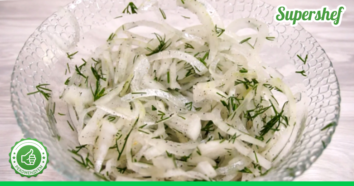 Такой пикантный лук отлично сочетается с овощами, мясом и рыбкой. Он годится к салатам, а также его можно