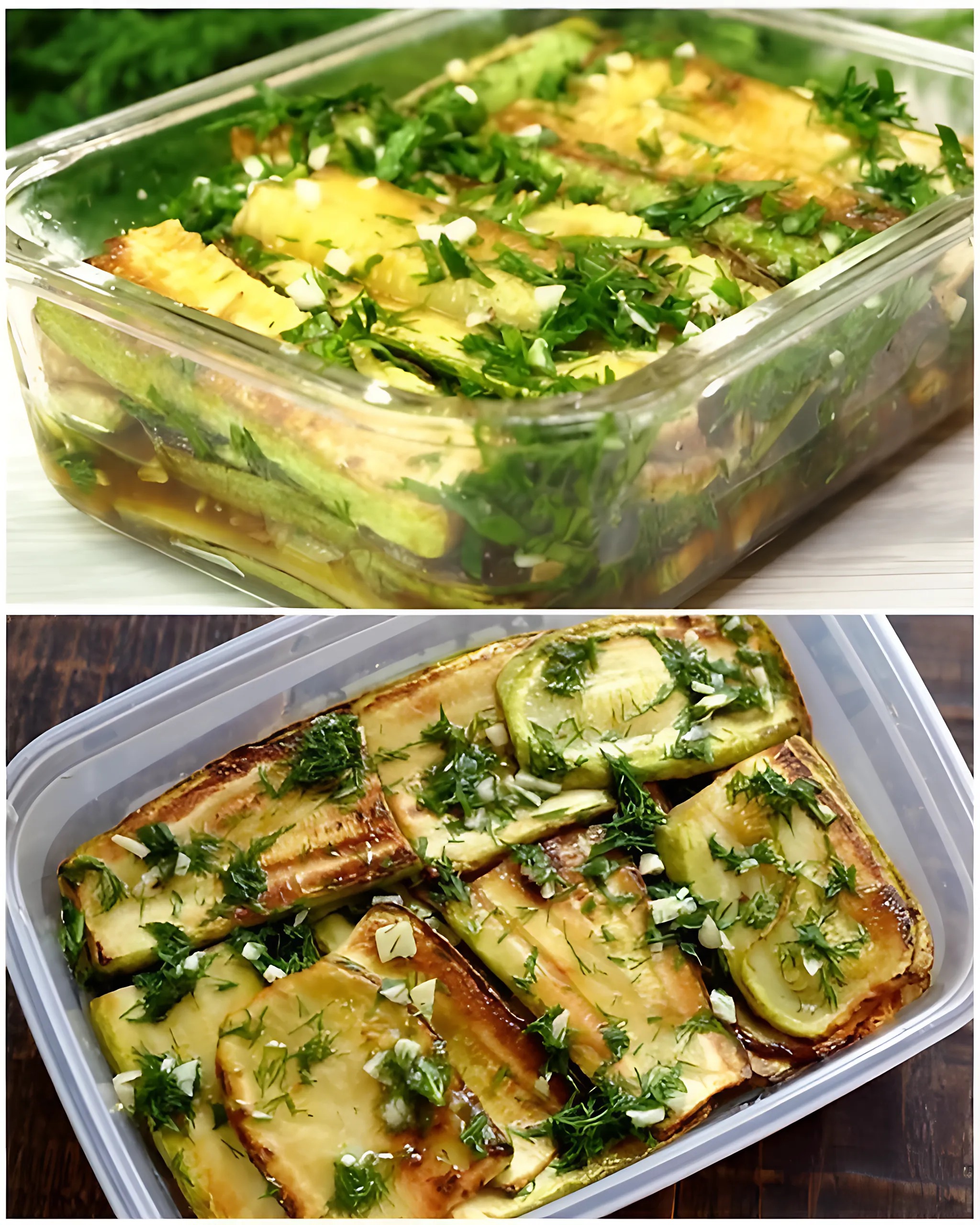 Главная изюминка блюда – пропитка лимонной кислотой. Благодаря этому кабачки приобретают необычный