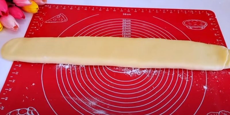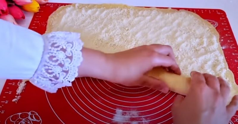 6. Сверните плотный рулет, слегка прижмите его скалкой и аккуратно раскатайте.