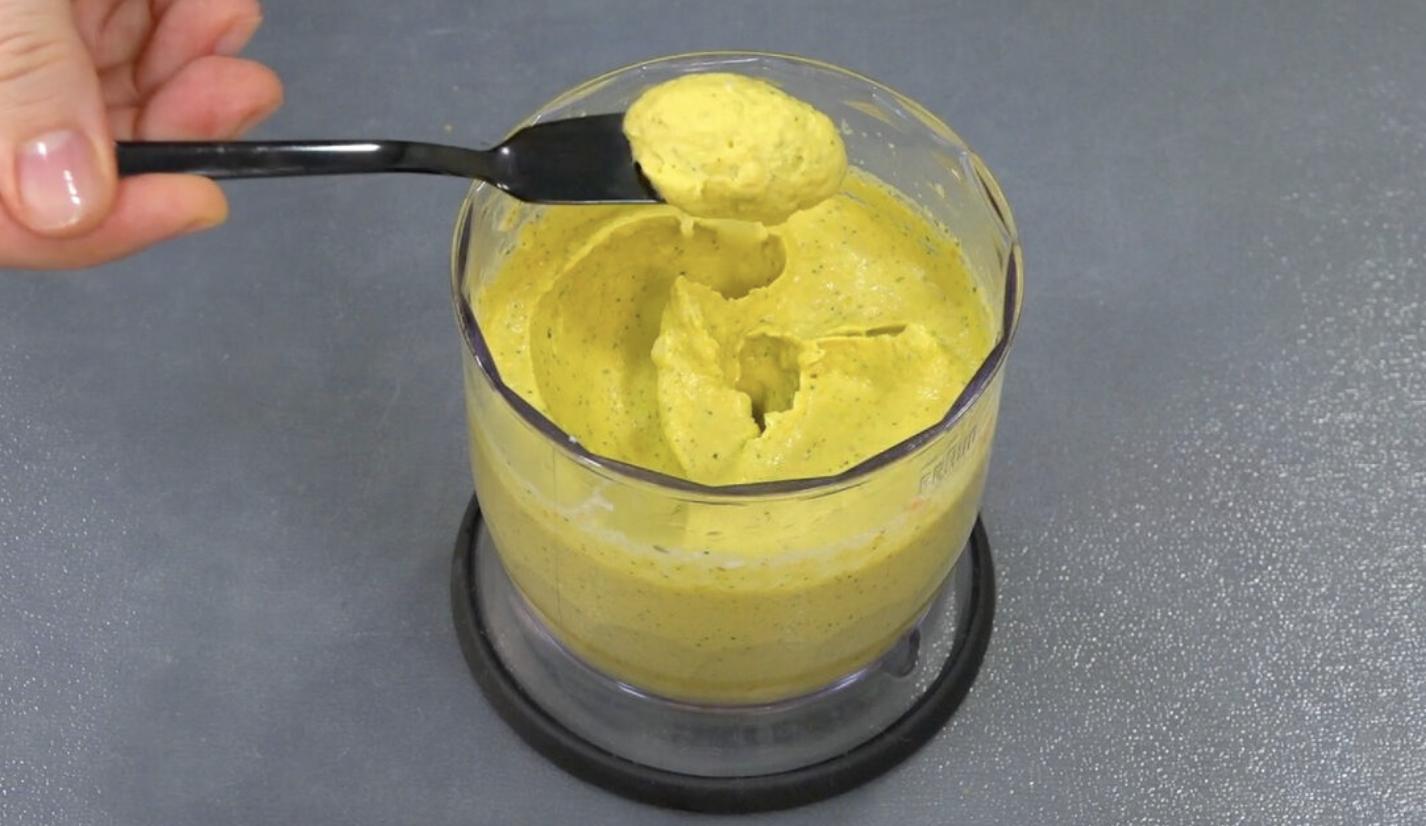 Сложите все ингредиенты в глубокую посуду или чашу блендера и хорошо измельчите до однородной массы.