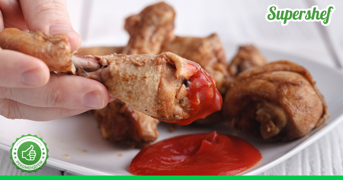 Куриные голени, бедра или крылья запеченные в нежном сливочном соусе со свежим овощным салатом или любым