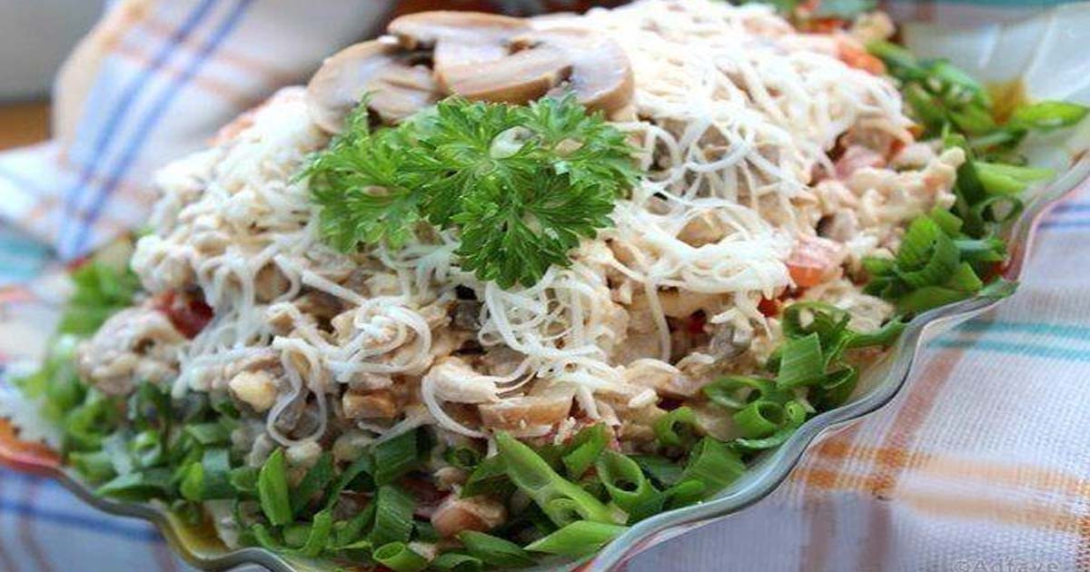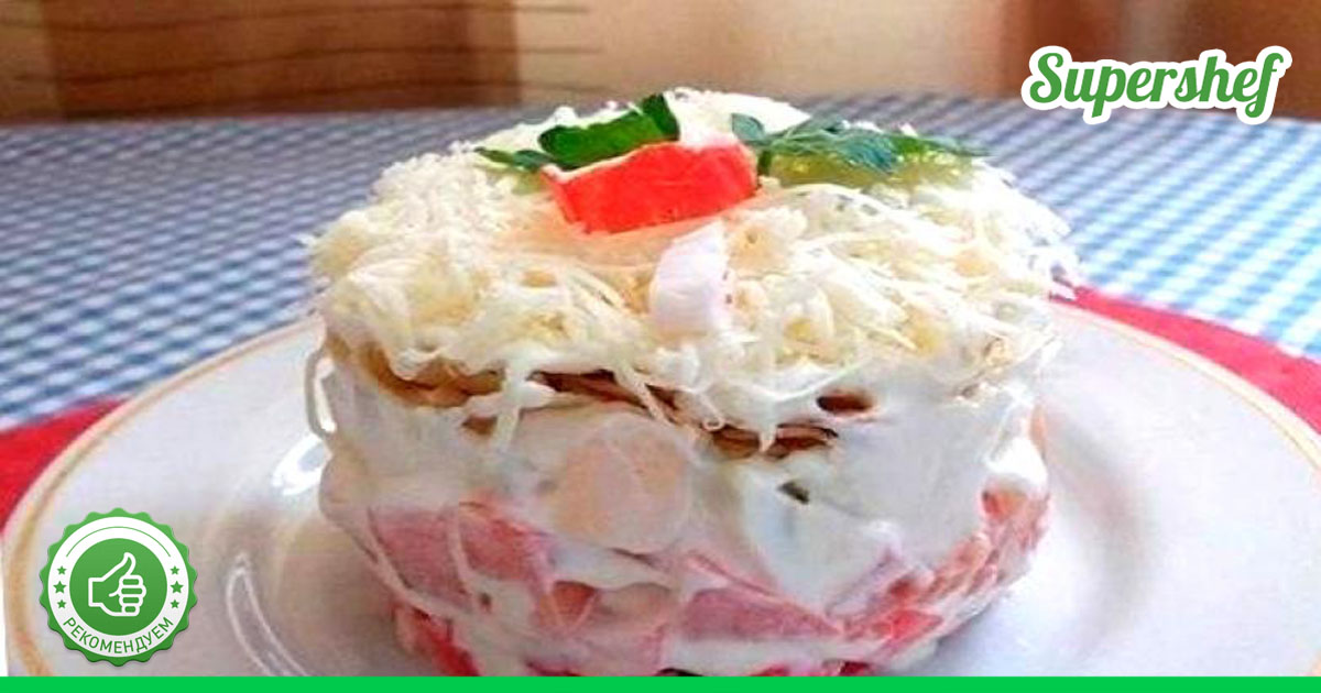 Данный салат чем то напоминает собою, легкое и красивое платье невесты. Потому что салат получается не