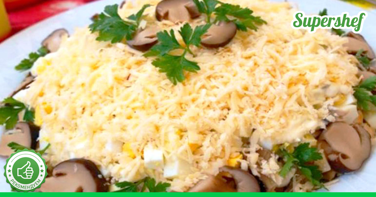 Если соскучились по вкусным салатам, в составе которых есть маринованные грибы, то этот рецепт как раз
