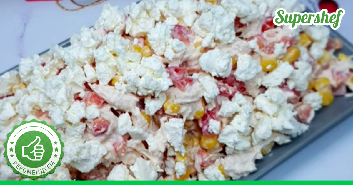 Если вы ограничены в продуктах, но хочется побаловать своих близких чем-то вкусненьким, то салат Снежинка
