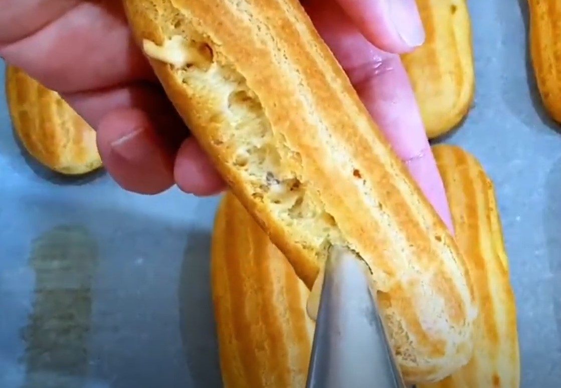 Получаются нежные домашние эклеры, которые идеально подходят к чаю или кофе.