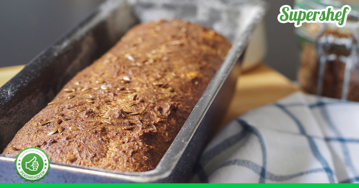 - Духовка разогревается до 180 градусов. Ставим внутрь форму и печем хлеб на протяжении часа. Тогда у выпечки появится золотистая корочка.
