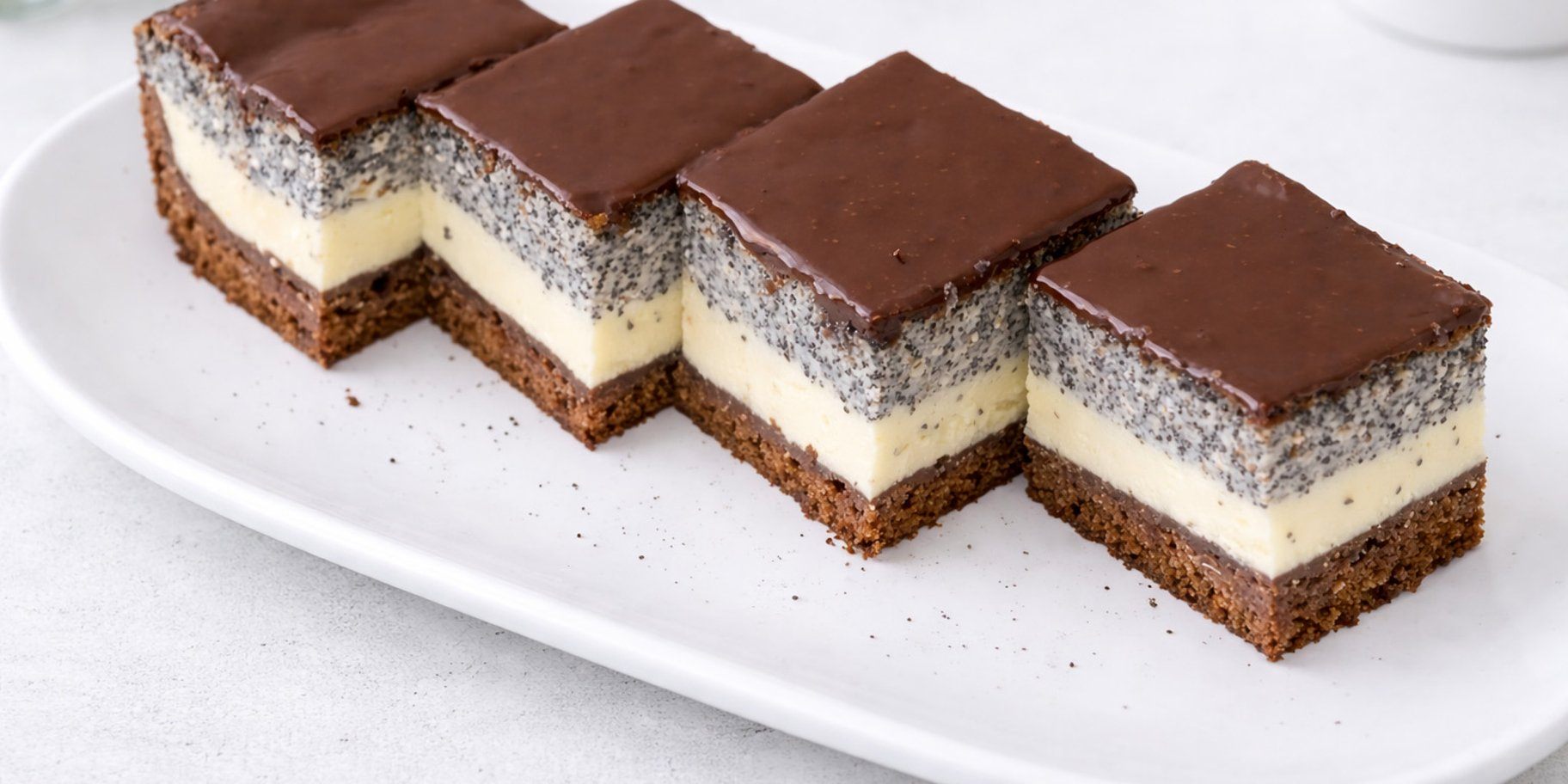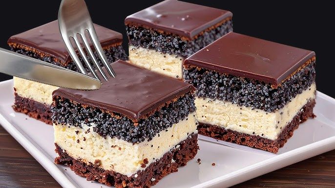 Это именно тот десерт, который спокойно можно приготовить накануне. Какаовая основа хорошо держит форму, творожный крем не растекается, а мак не получается сухим. Готовится всё без лишней сложности, зато результат выходит стабильным и очень удачным.