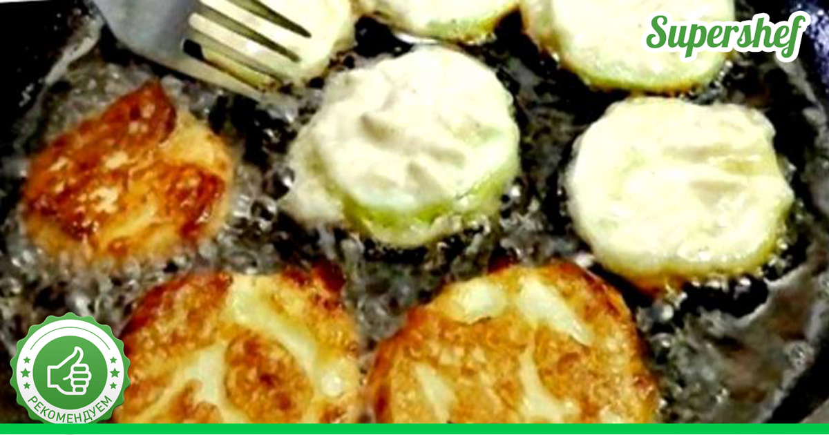 Каждое колечко кабачка макайте в кляр и выкладывайте на сковороду, смазанную растительным маслом.