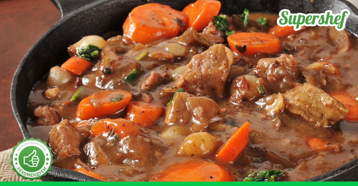 Бульон, которым заливается мясо для тушения, должен составлять третью часть от всего объема продуктов. Приготовление мяса должно происходить обязательно при закрытой крышке. Контакт с воздухом – только во время помешиваний через 15-20 минут. Блюдо будет готово примерно через 3-4 часа.