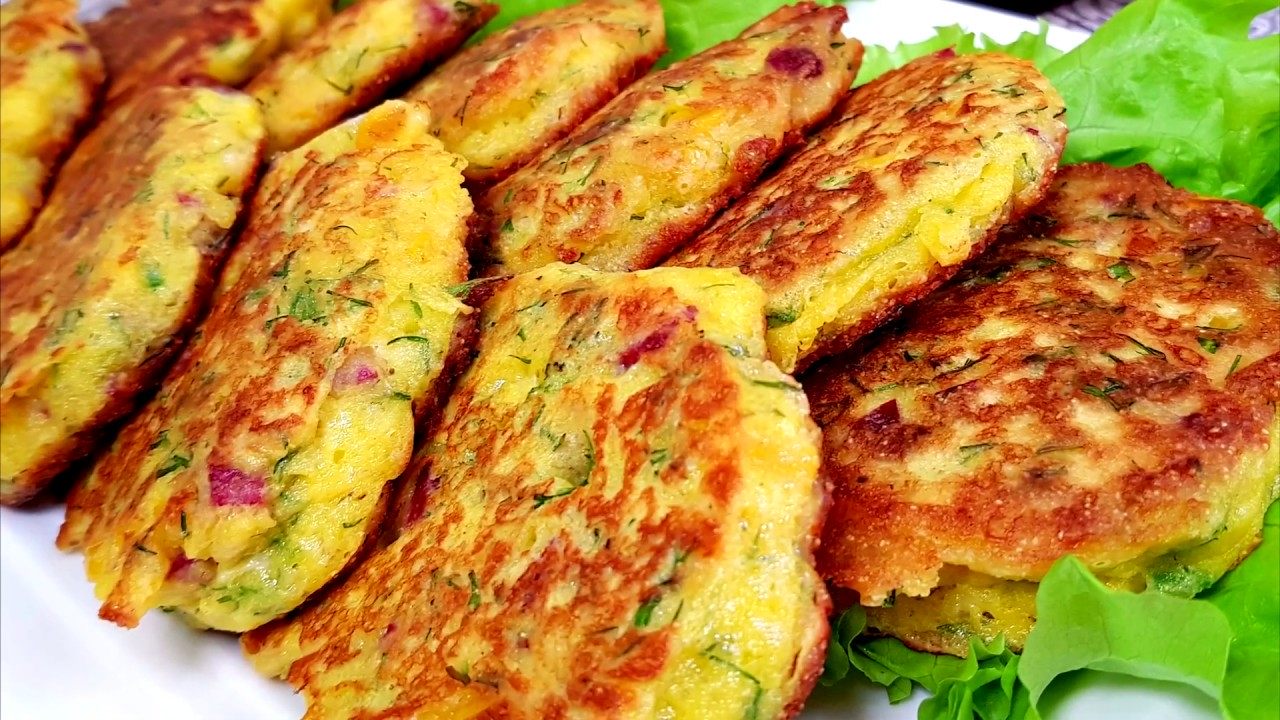 - Приготовление. На слабом огне разогреваем сковородку, на которую налито масло. Выкладываем массу при помощи ложки, формируя аккуратные лепешки и немного прижмите их сверху.