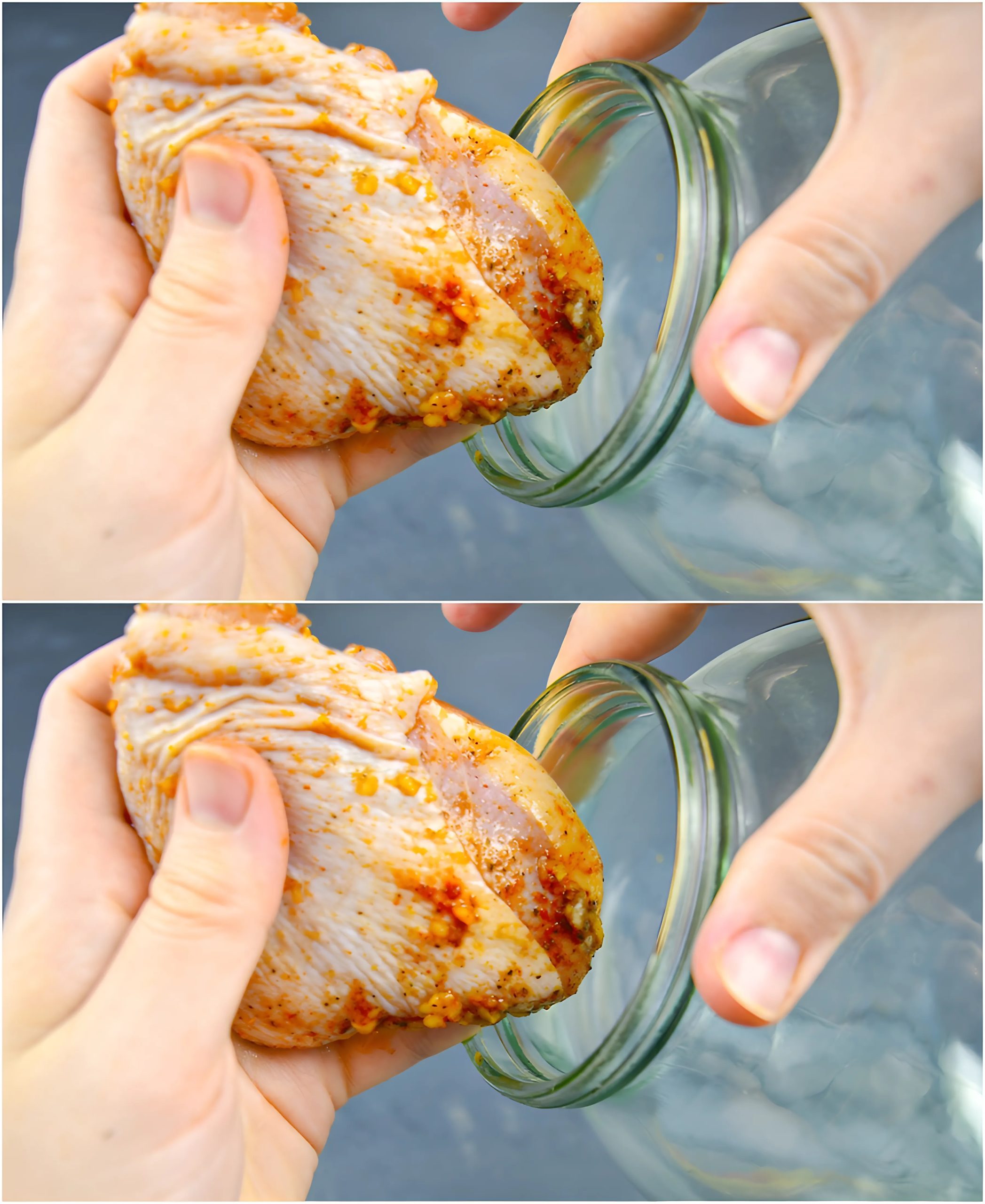Оказывается можно запечь курицу в простой стеклянной банке и это получается невероятно вкусно. Мясо будет ароматным, пропитанным собственным соком. Готовить сразу можно с гарниром, чтобы сократить время.