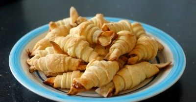 Можно оставить круассаны «пустыми» или положить внутрь густой джем, дольку шоколада, мак или орехи. Для несладкого варианта подойдет сыр с зеленью.