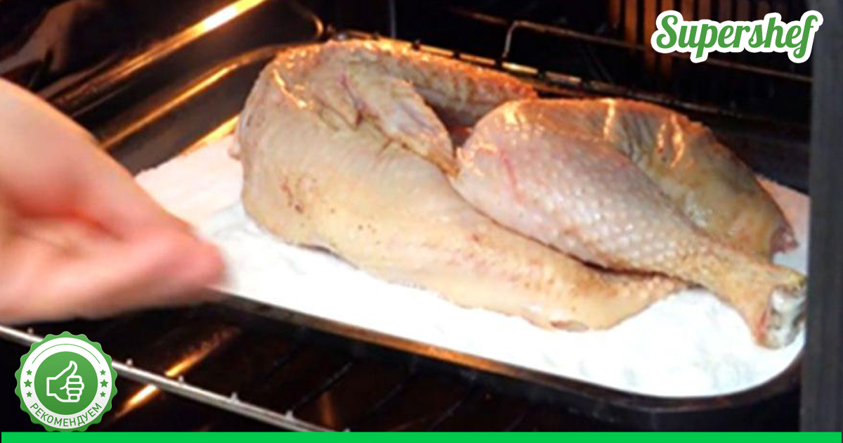 Чтобы курочка была не только румяной сверху, но и хорошо запекшейся, очень мягкой и сочной внутри, ее нужно запекать на слое соли. Соль нужно насыпать на лист или форму, чтобы она полностью покрыла дно, не бойтесь, что пересолите вашу курочку, нет, этого не произойдет. Курица возьмет столько соли, сколько нужно. Зато ваша курочка не пригорит, хорошо пропечется. И соль впитает в себя весь жир, который вытопится из курицы. Положить курицу нужно спинкой на соль, предварительно посолите, поперчите, добавьте специальные специи для курицы.
