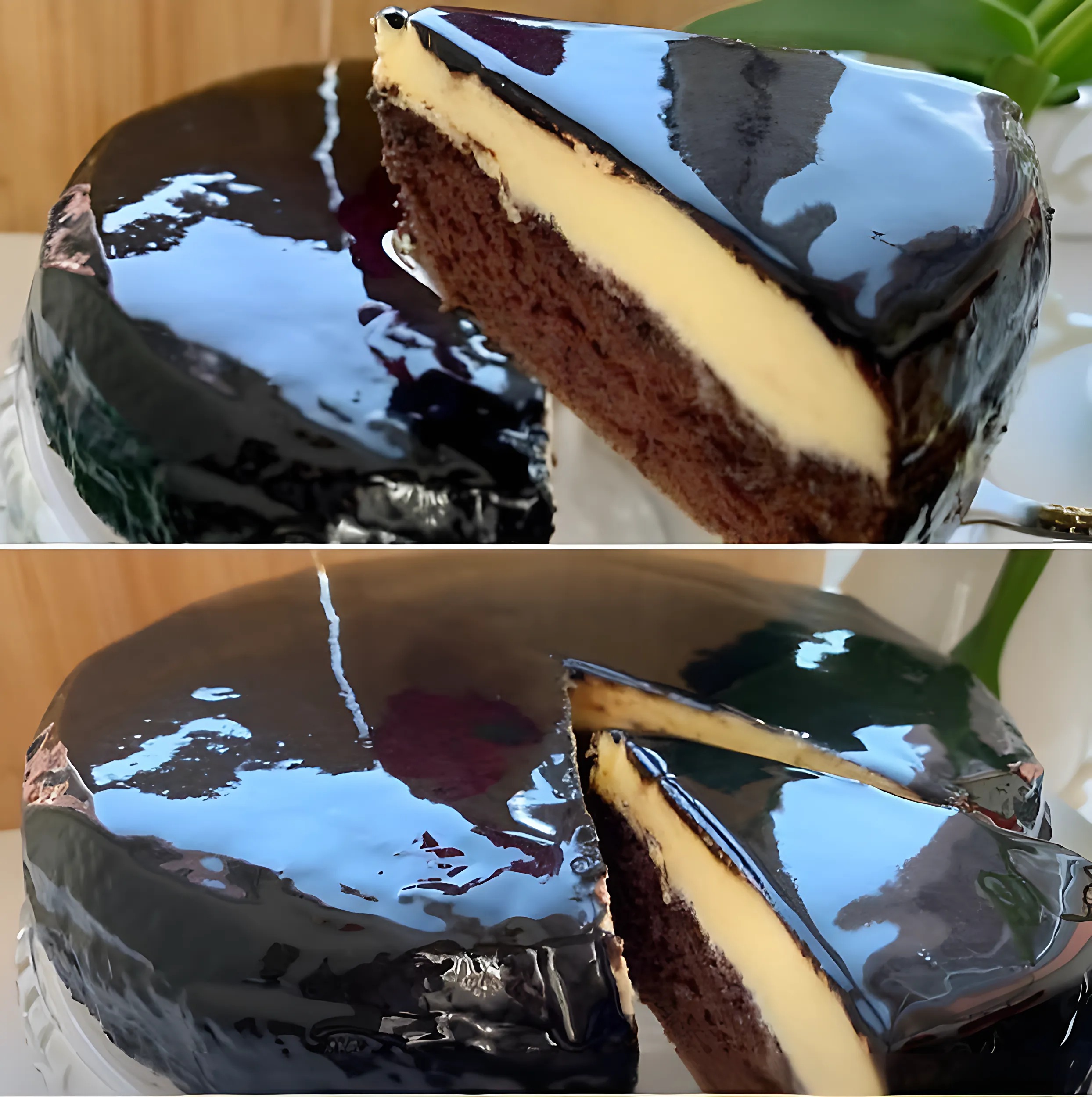 Это настоящее произведение искусства. Красивая глянцевая поверхность торта будет манить каждого попробовать хоть кусочек. И съев его тут же захочется еще. Рецепт приготовления его не сложный. Попробуйте создать это чудо и гости надолго запомнят праздничный вечер.