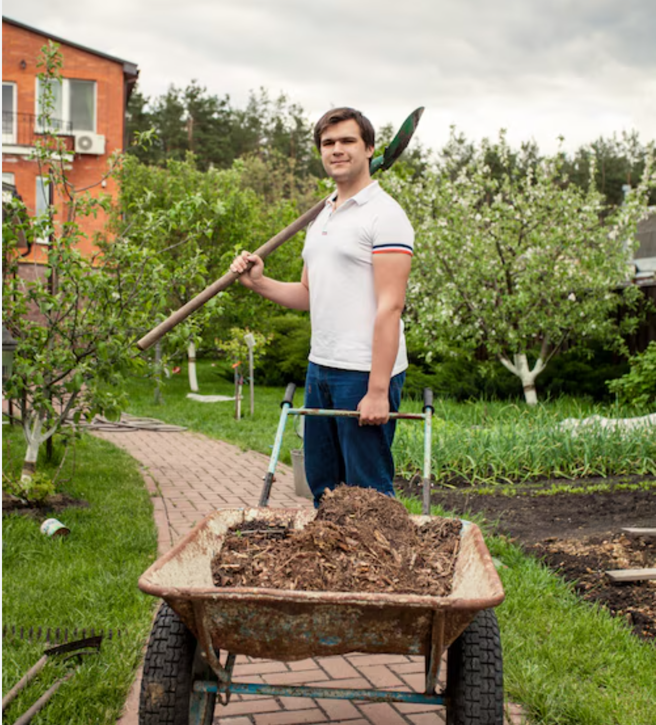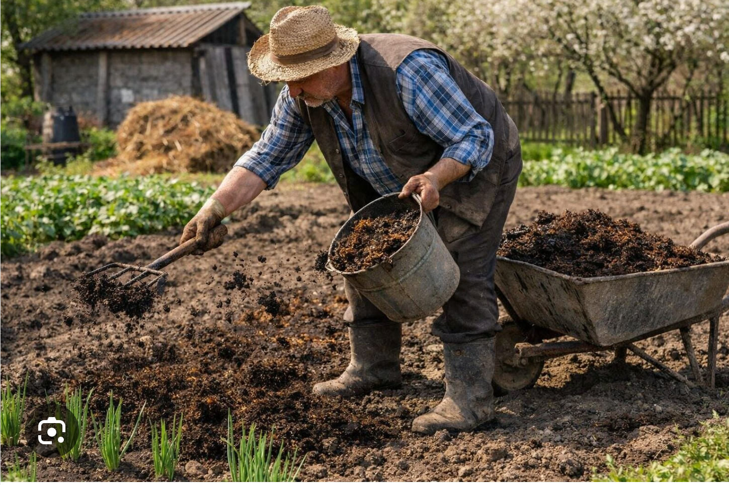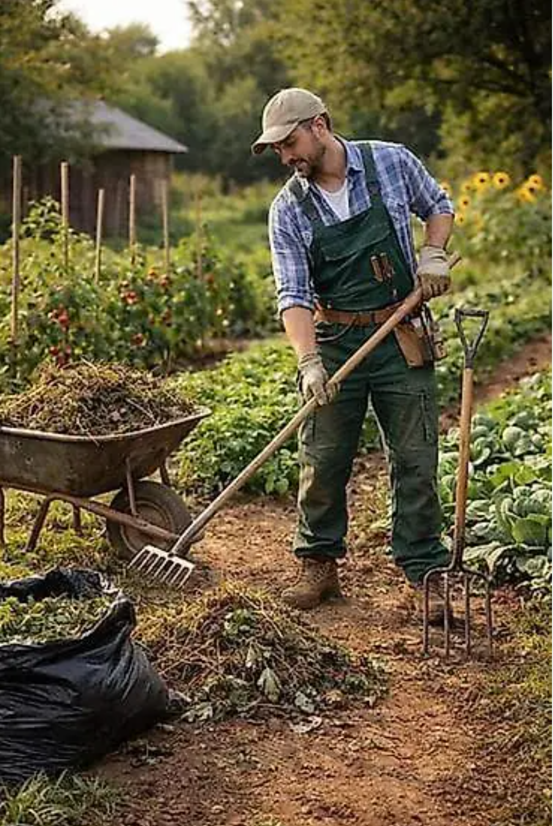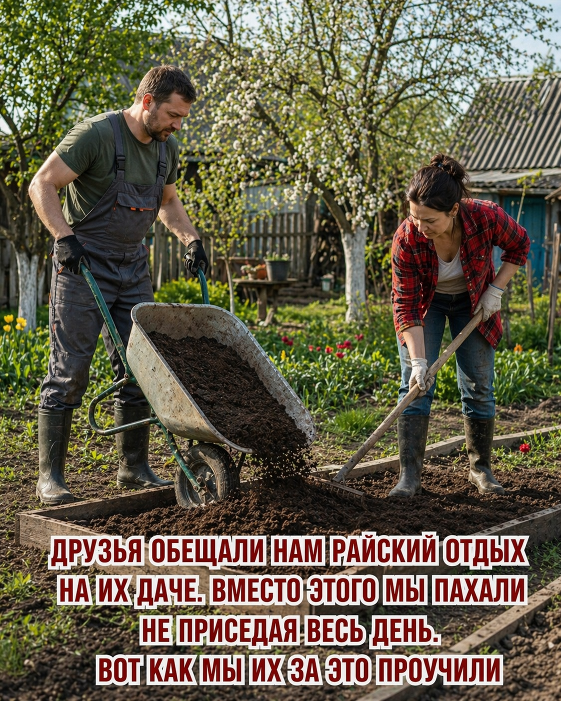 Трава по пояс, перекошенный недостроенный дровник и бесконечные грядки, уходящие чуть ли не за горизонт. Посреди всего этого стояли хозяева — в рабочих штанах, перепачканные землёй и солнцем.