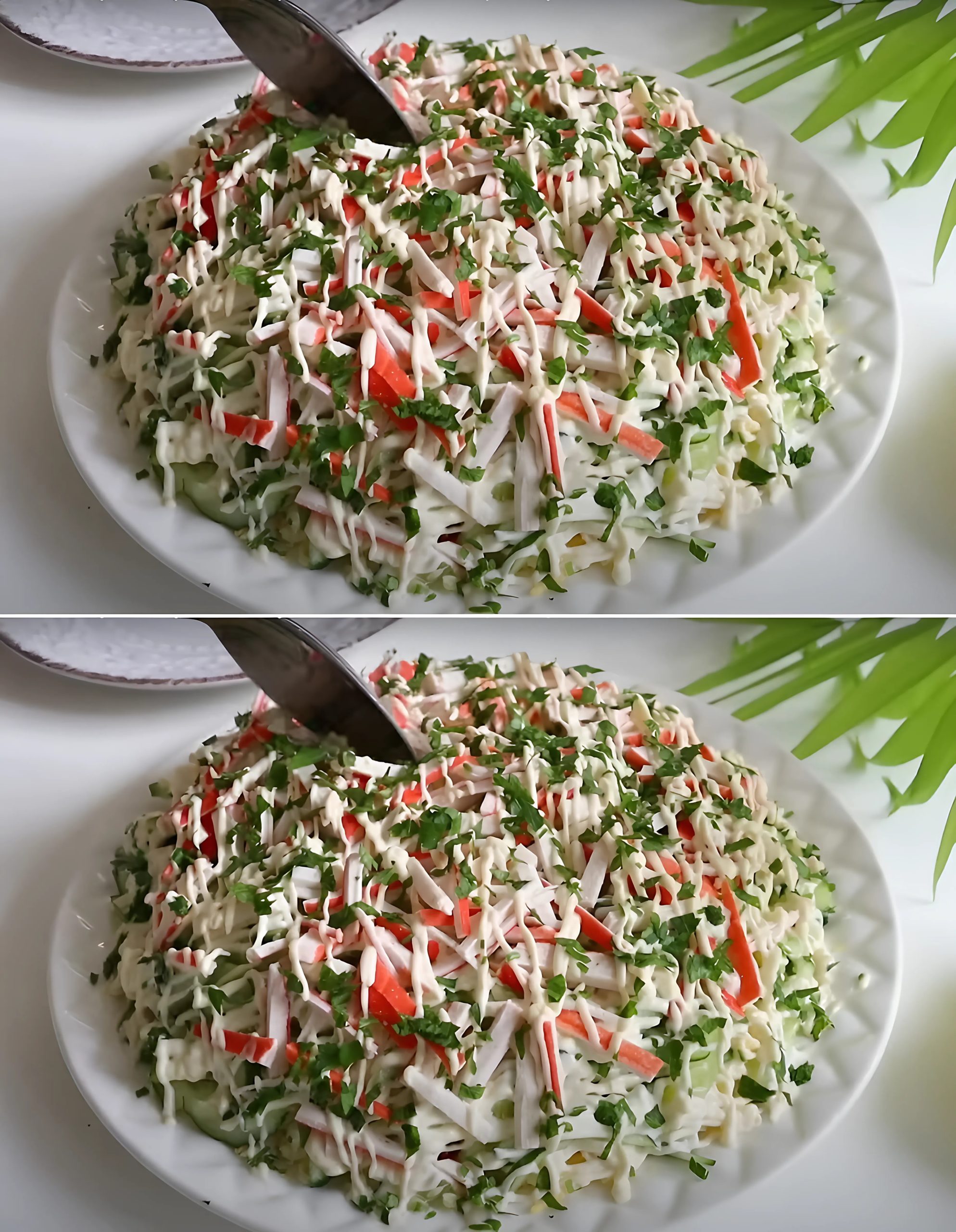 Салаты с крабовыми палочками пользуются большой популярностью. Вот еще один интересный рецепт, с грибами.