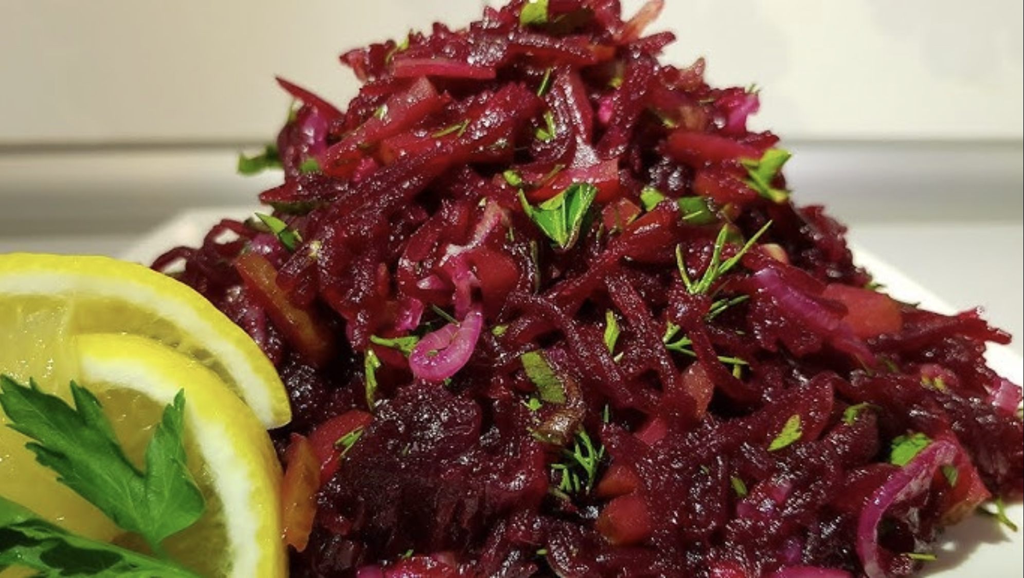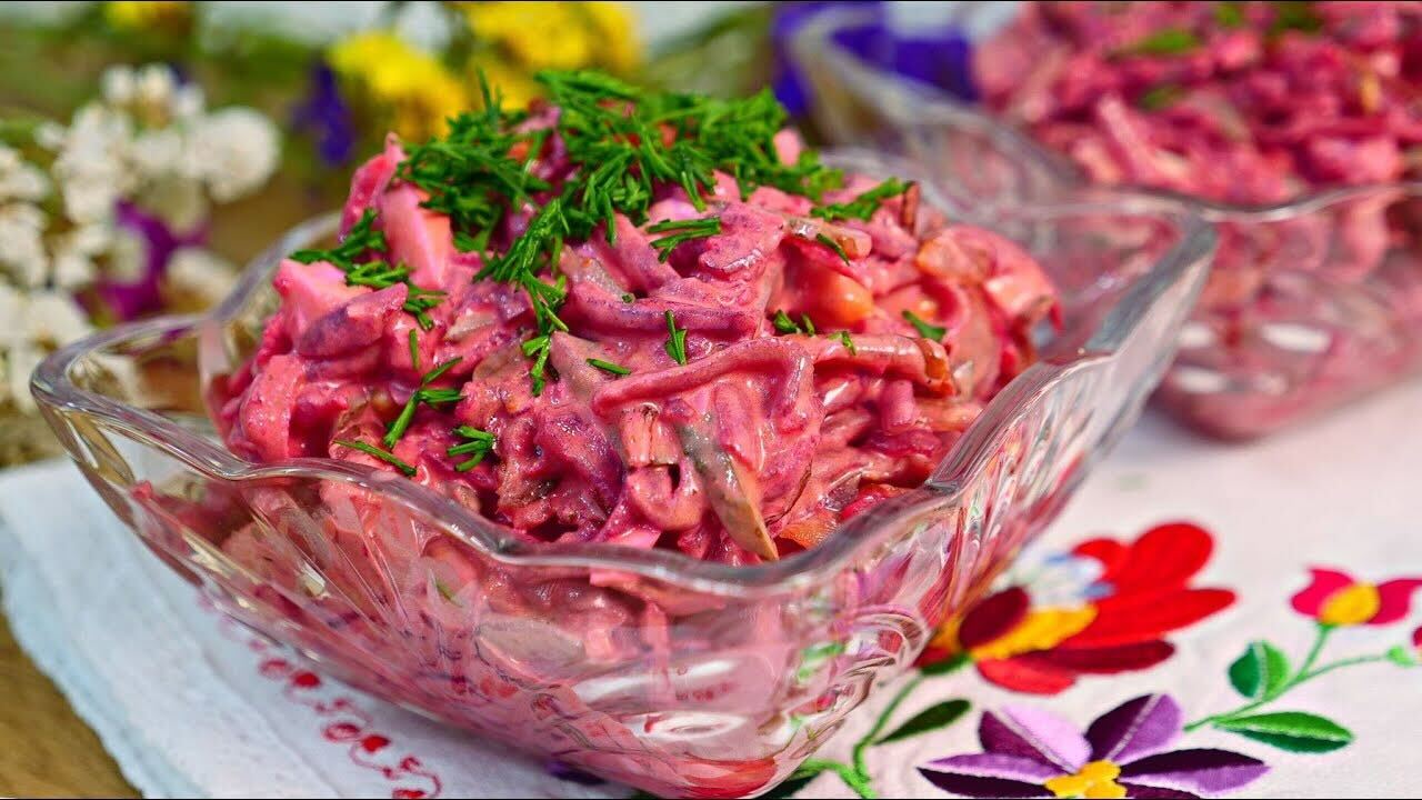 Если вы цените свеклу, этот рецепт станет вашим фаворитом. Набор продуктов максимально доступен, а вкус получается насыщенным и многогранным. Салат выглядит ярко и очень сочно.