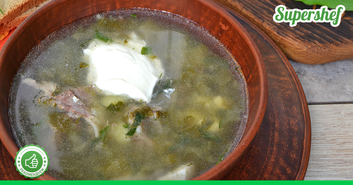 Обычно первое блюдо готовят на бульоне из куриных ножек или крылышек. Что касается зелени, то есть только одно правило: чем больше — тем лучше. Главным зеленым компонентом является щавель, ведь он добавляет блюду кислоту. Кроме этого, можно разбавить вкус шпинатом, зеленым луком, укропом, петрушкой, ошпаренной крапивой.