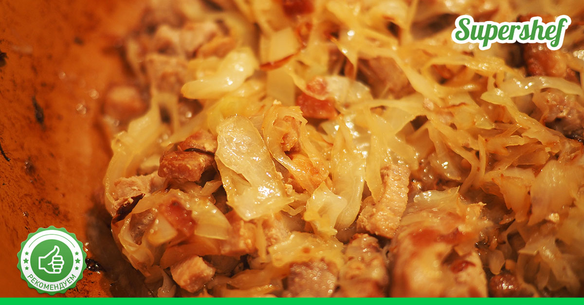 Квашеную капусту нужно обязательно промыть и откинуть на дуршлаг. С обжаренными луком, морковью и добавленными специями капуста будет готова через полчаса. После этого в нее кладут томат, сахар и порезанную зелень. Блюдо перемешивается и настаивается под закрытой крышкой около 5 минут.