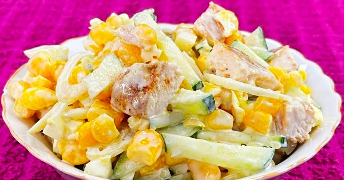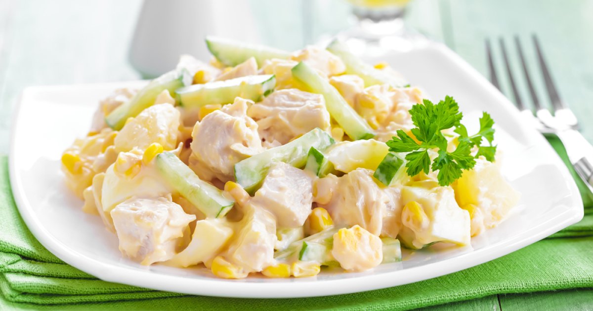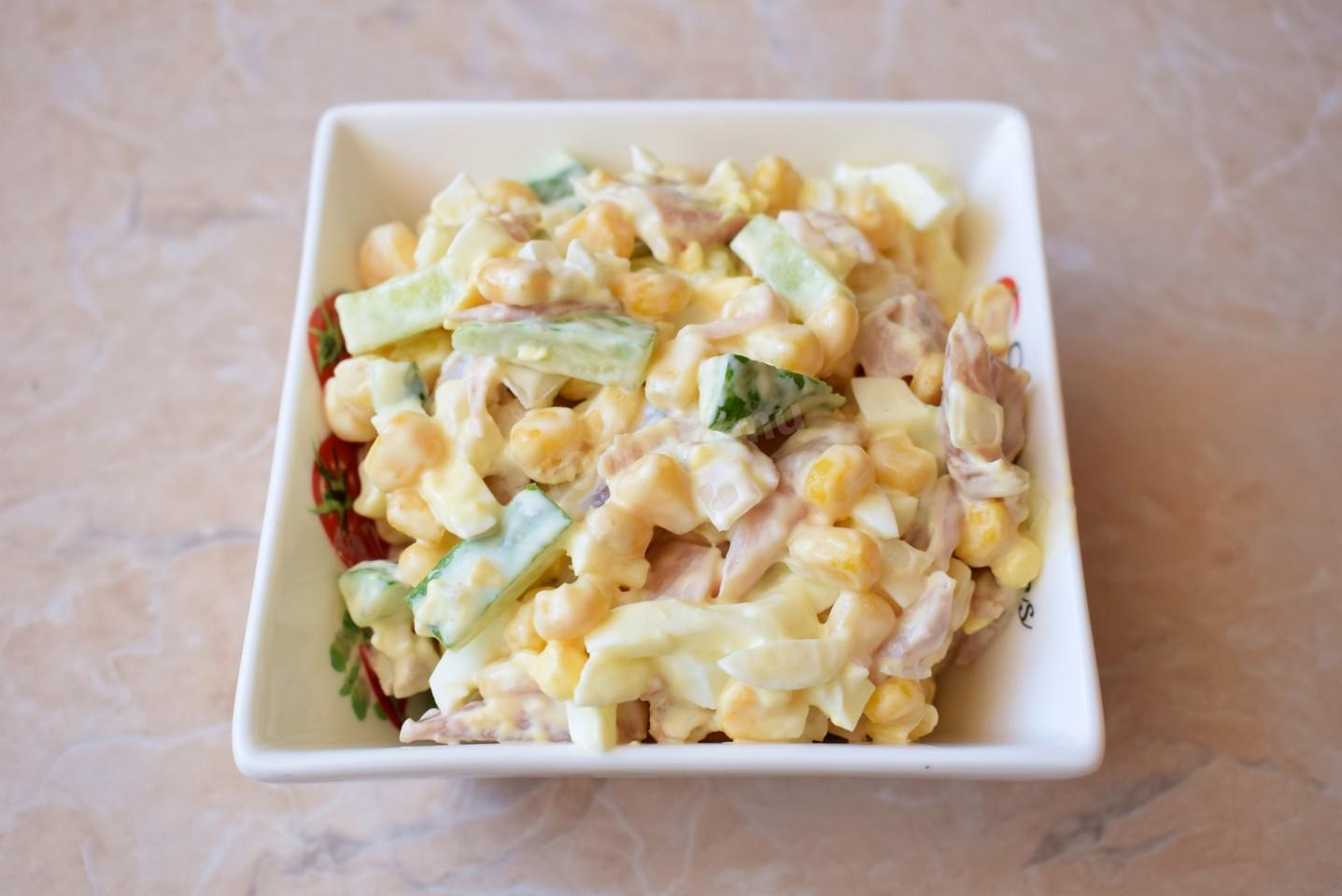 Салат получается сытным, но при этом легким — удачное сочетание белка и овощей. Если хотите приготовить вариант более полезный, майонез легко заменить сметаной или йогуртом.