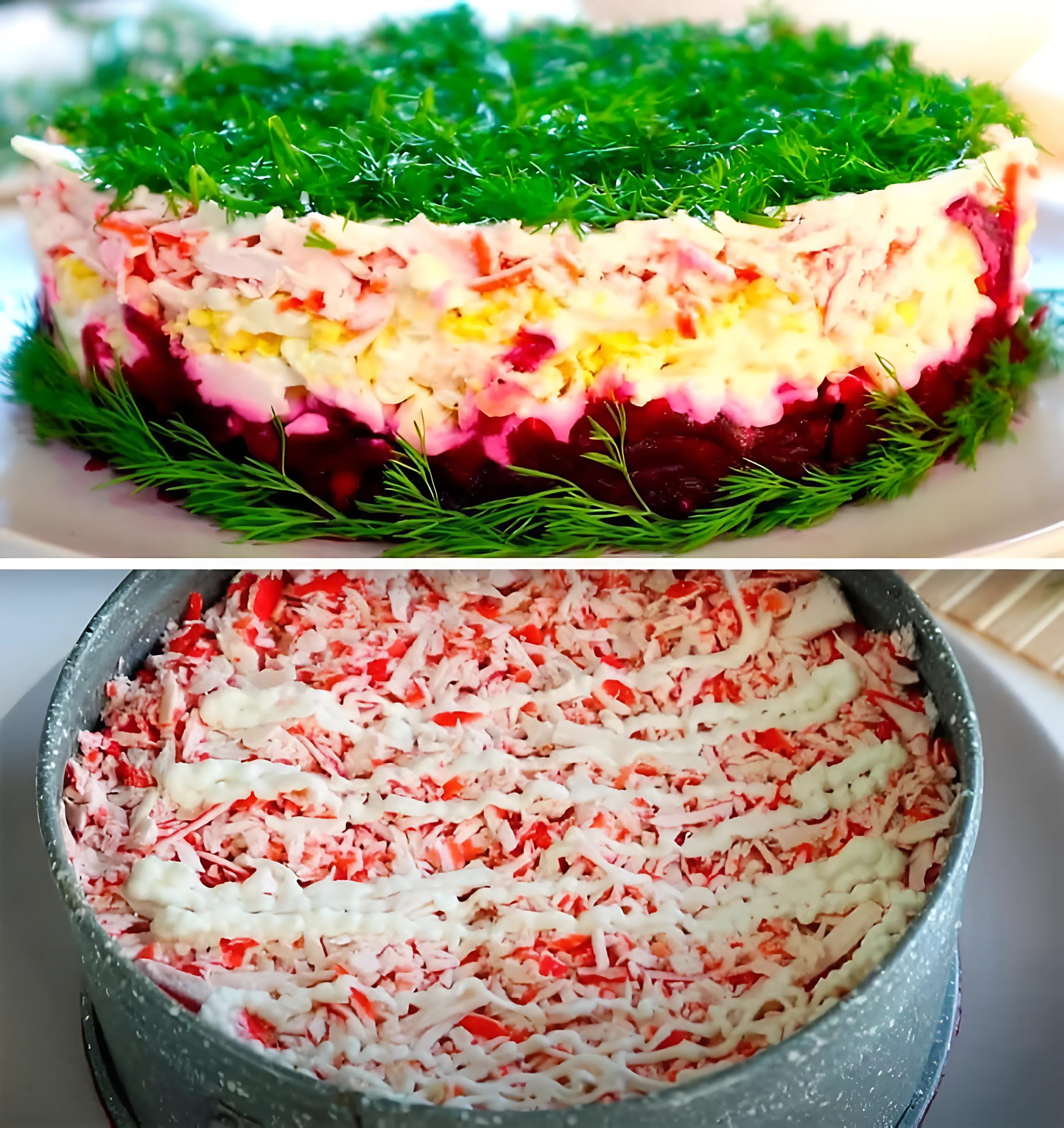 Салат готовится из свеклы и крабовых палочек. Необычное сочетание дает непревзойденный вкус. Подготовьте такие продукты: