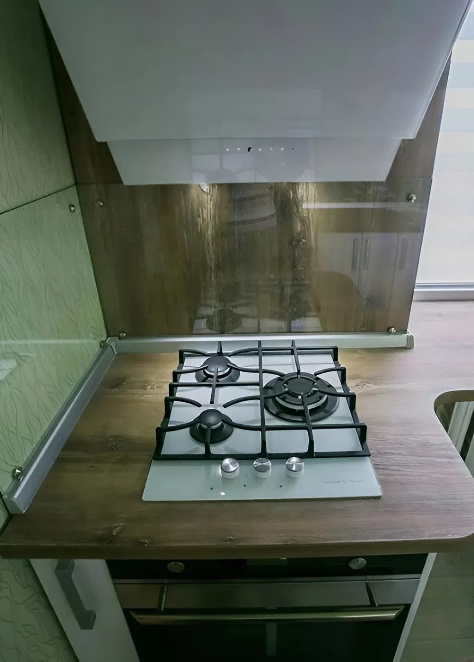 Фартук с фотопечатью сегодня уже выглядит немного устаревшим. Однако ремонт в квартире делали еще в 2016 году, когда подобные решения находились на пике популярности. Впрочем, в этой истории ключевую роль играет не декоративная часть, а именно планировка.