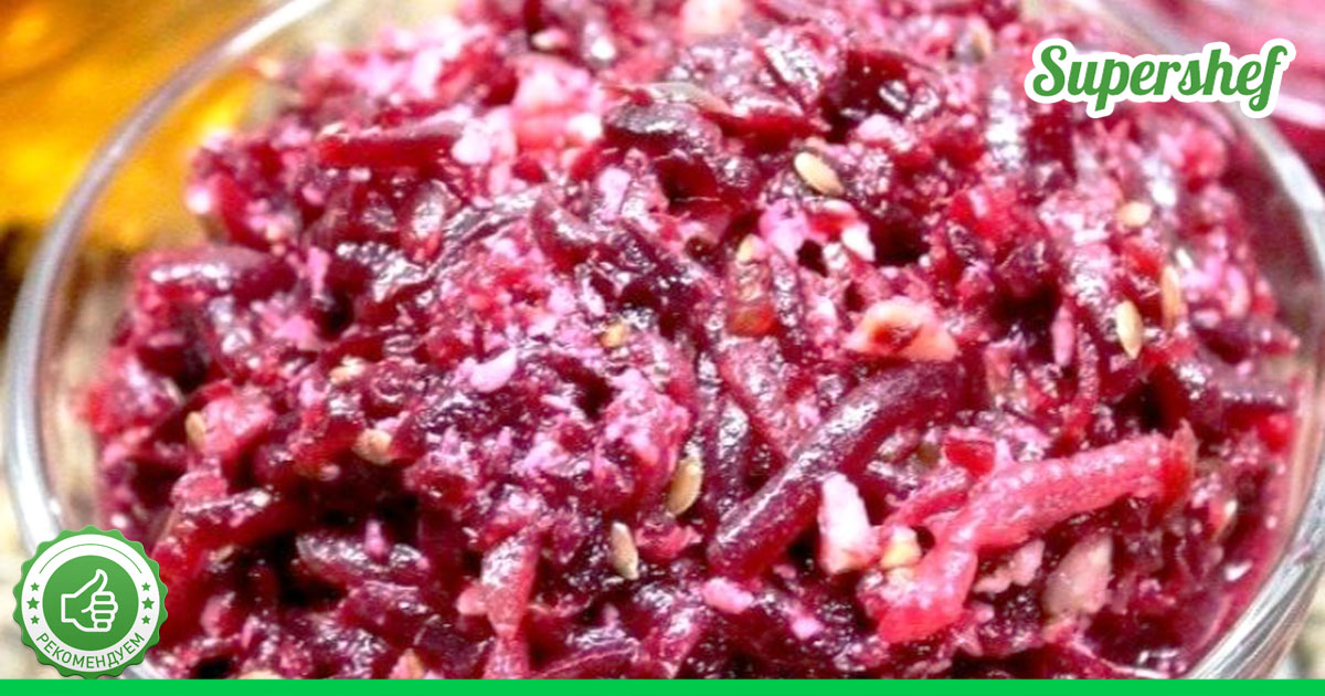 Сварите заблаговременно буряк. Очистите его, потрите на крупной терке и отправьте к огурчику.