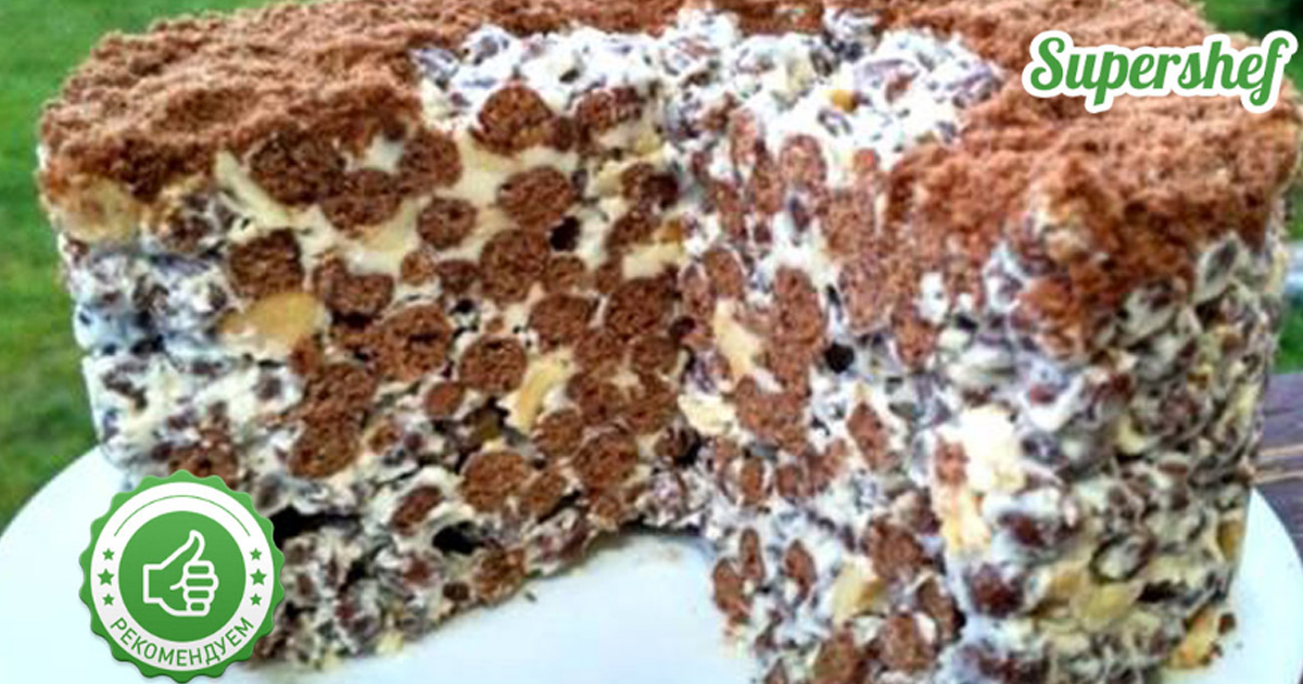 Этот рецепт является чрезмерно простым, но по нему получается очень вкусный торт. С приготовлением справится даже ребенок. Для него не требуется замешивать тесто, поэтому десерт можно подавать на стол спустя 10 минут.