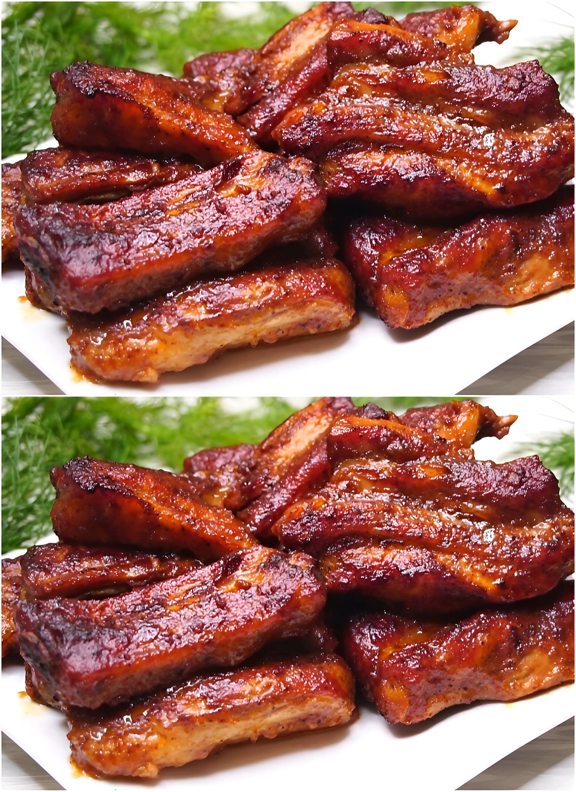Спустя время выложите ребра на противень. Затяните его фольгой и отправьте в прогретую до 220 градусов духовку. Время приготовления – 50 минут. После уберите фольгу и полейте соусом. Отправляем обратно в духовку на 30-40 минут для румяной корочки. Каждые 10-15 минут нужно открывать дверцу, доставать противень и поливать мясо соусом.