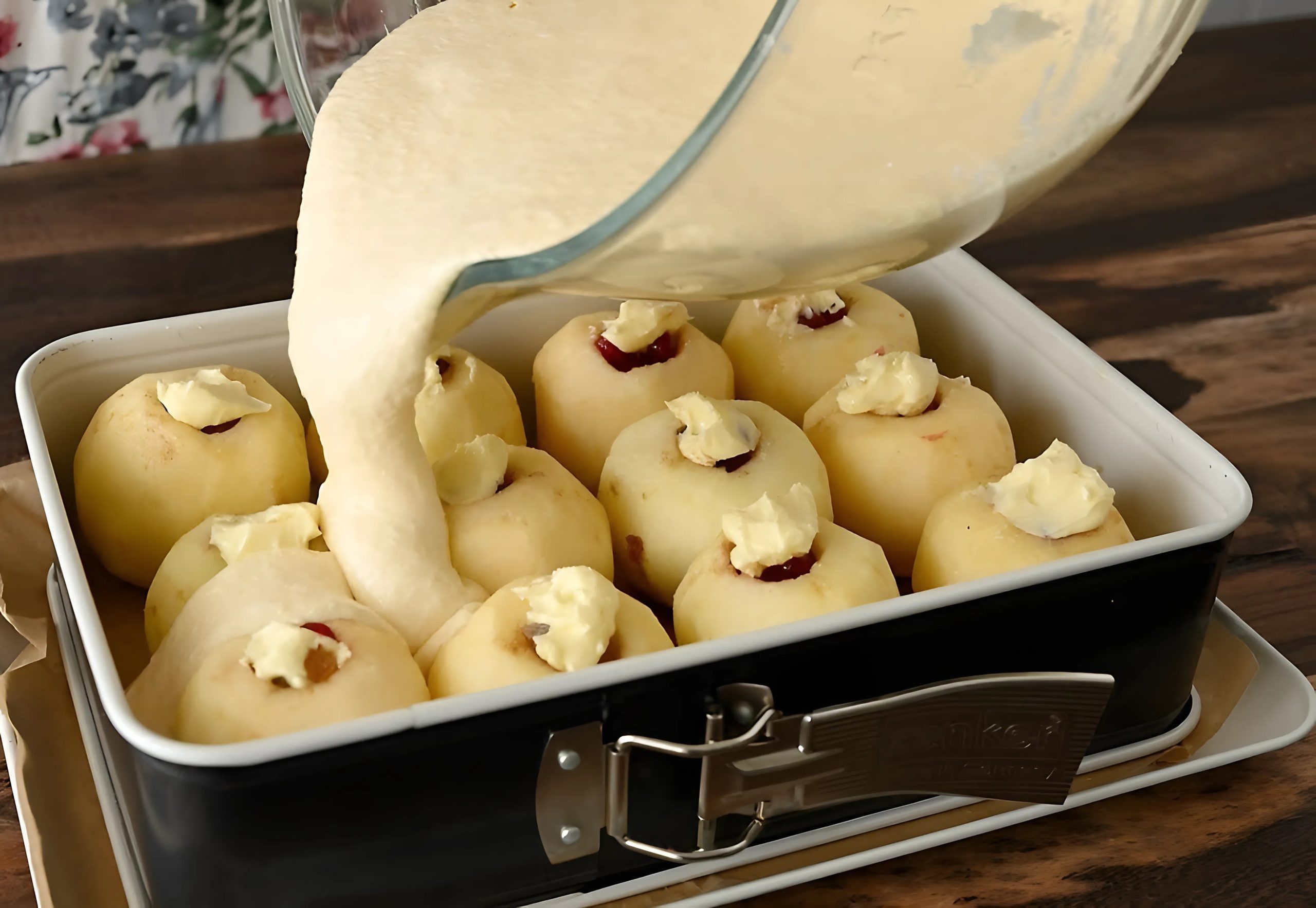 Переложите тесто в форму на яблоки. Отправьте заготовку в духовку на час при 180 градусах. По завершению приготовления украсьте пирог сахарной пудрой. Перед подачей порежьте порционно.