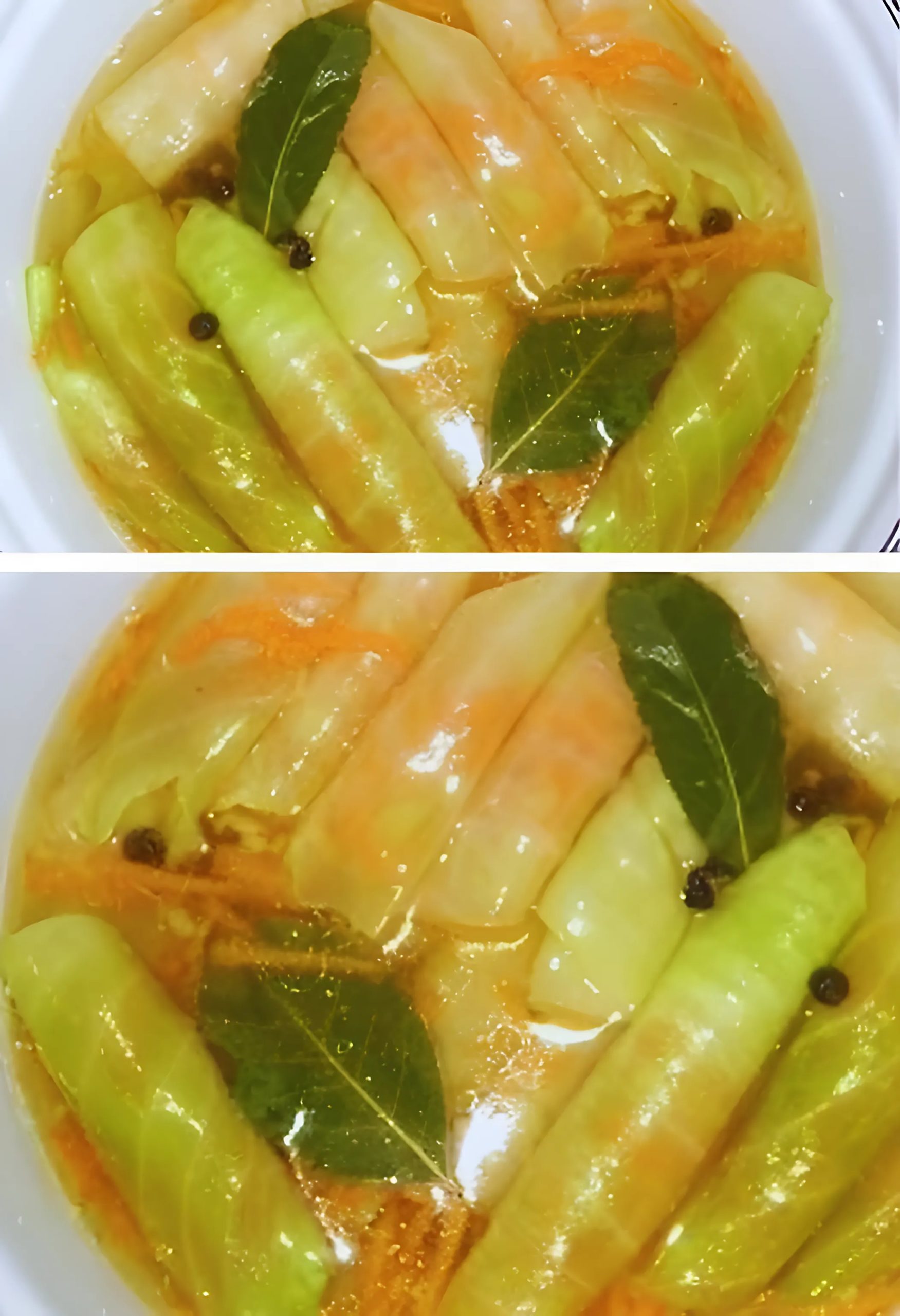 Закипятите воду, насыпьте соль, сахар и варите 5 минут. Добавьте лаврушку, перец, постное масло. После закипания маринада влейте уксус. Когда в третий раз жидкость закипит, залейте ею рулеты. Сверху положите тарелку, чтобы рулеты были полностью покрыты жидкостью.