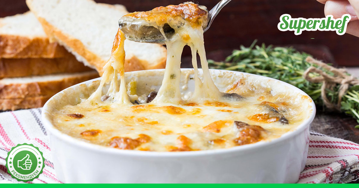 Желательно сверху посыпать тертым сыром. Ставим в духовку для запекания на протяжении 10 минут. Перед этим ее нужно разогреть аж до 250 градусов, чтобы образовалась корочка.